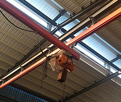  ※ 多轨道悬挂------覆盖更大的仓储及生产区域,起重机可以轻松地用手移动。注:起重机跨距大于6m,起重机载荷超过500kg时,为减轻操作人员工作强度,建议采用电驱动行走方案。